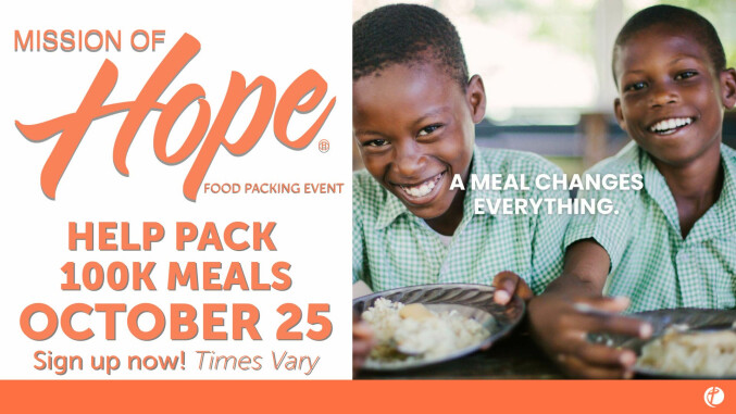 Help us pack 100,000 meals to send to our brothers and sisters in Haiti! Click here to pick your spot to pack.